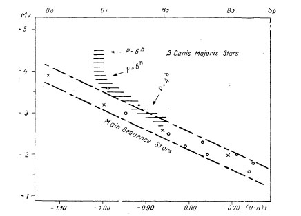 Fig. 1. - The sequence of the beta CMa stars in the colour-absolute