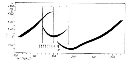 K_1 and K_2 range from a few km/sec to tens of km/sec;