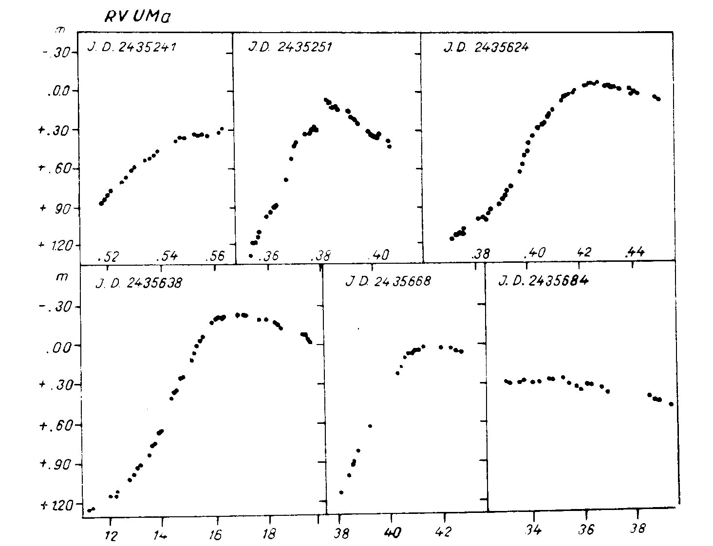 RV UMa, wo die maximale Helligkeit in einem Intervall von 0.6 Grössenklassen