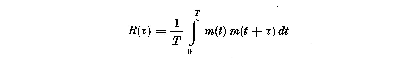 (3) The positive square root of the variance is called the standard deviation. 2. The probability density function describes the probability that the data will assume a value within some defined range at any instant of time. The probability that m(t) assumes a value within the range between m and m + Delta m may be obtained by taking the ratio T_(m, m + Delta m) / T , where T_(m, m + Delta m) is the total amount of time that m(t) falls inside the range (m, m + Delta m) during an observation time T. 3. The autocorrelation function describes the general dependence of the values of the data at one time on the values at another time. An estimate for the autocorrelation between the values of m(t) at times t and t + tau may be obtained by taking the product of the two values and averaging over the observation time T. In equation form: