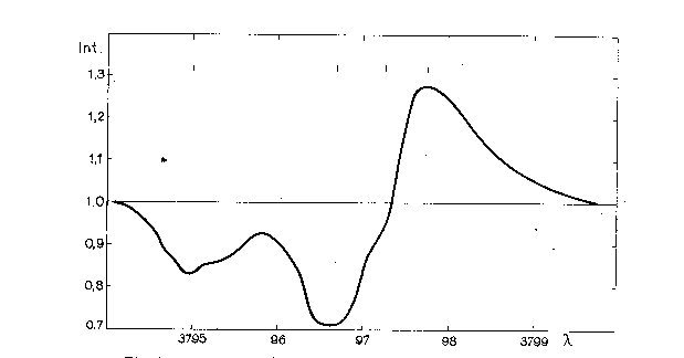 Fig. 1. Profile of H10 lambda 3797 showing three absorption components.