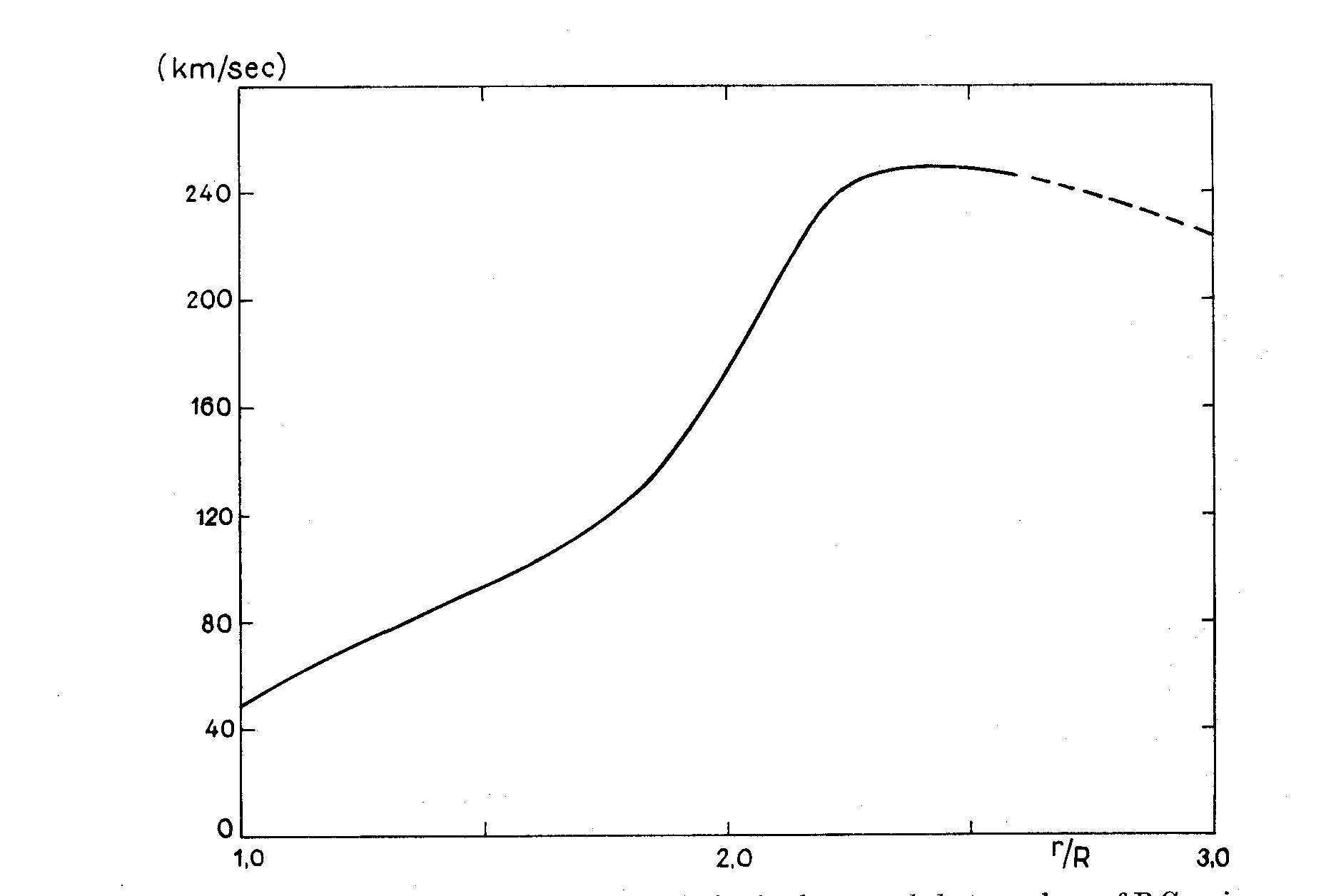 Fig. 8. Tentative picture of the outward velocity in the extended