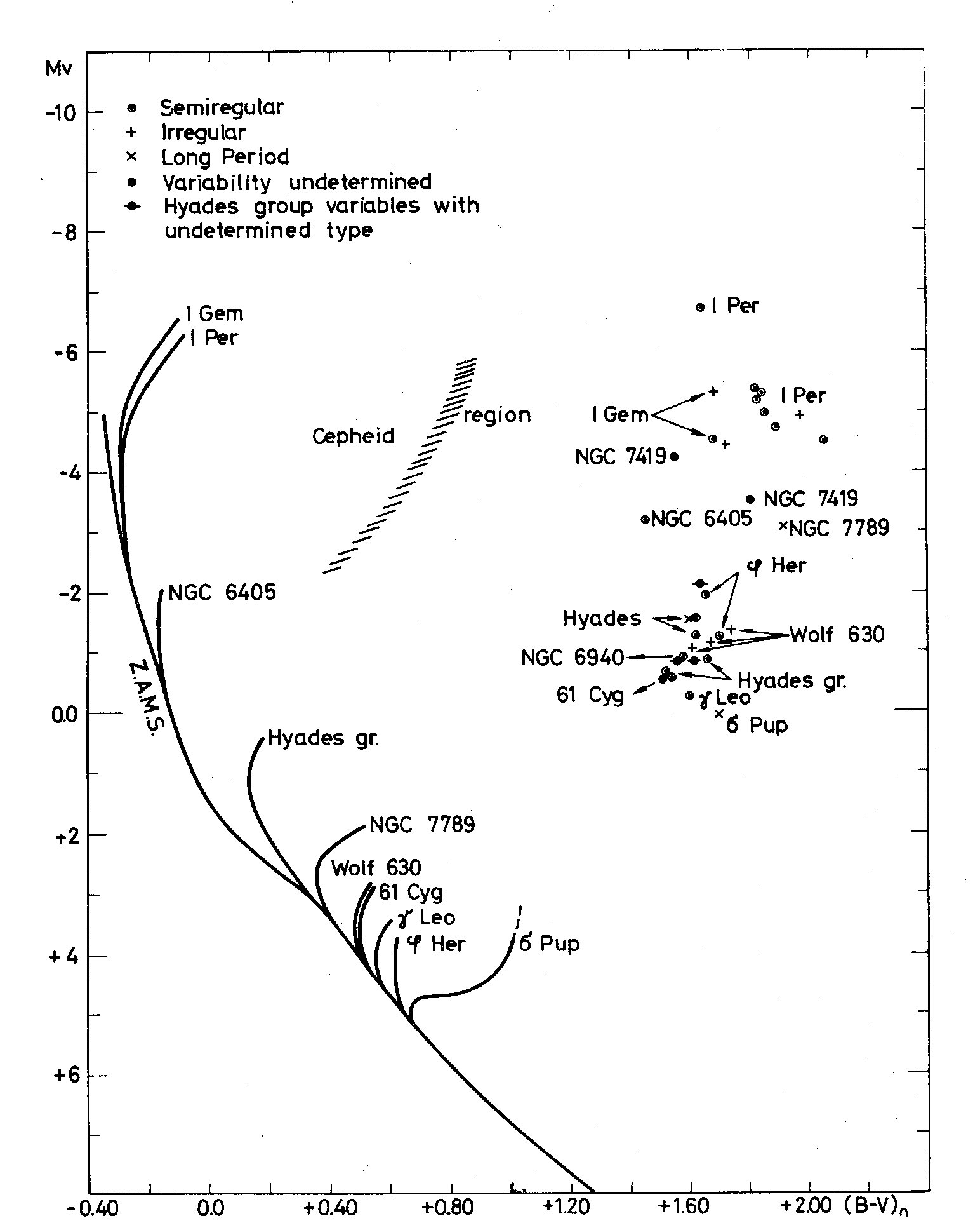 Fig. 2. H-R diagram of semiregular and irregular red variables. Schematic main
