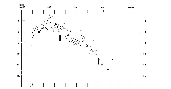 a flat maximum and slow decline of brightness. In 1966-67 it took the nova