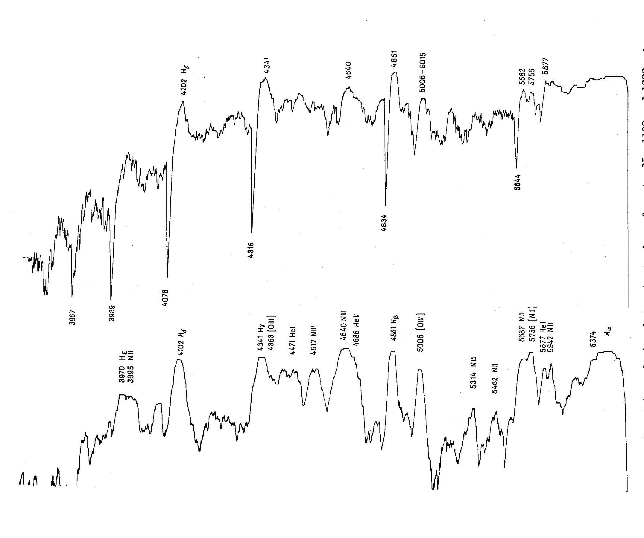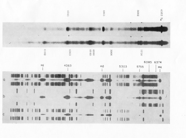 the spectrum was studied by Humason (1938), Babcock and Elvey (1943) who found,