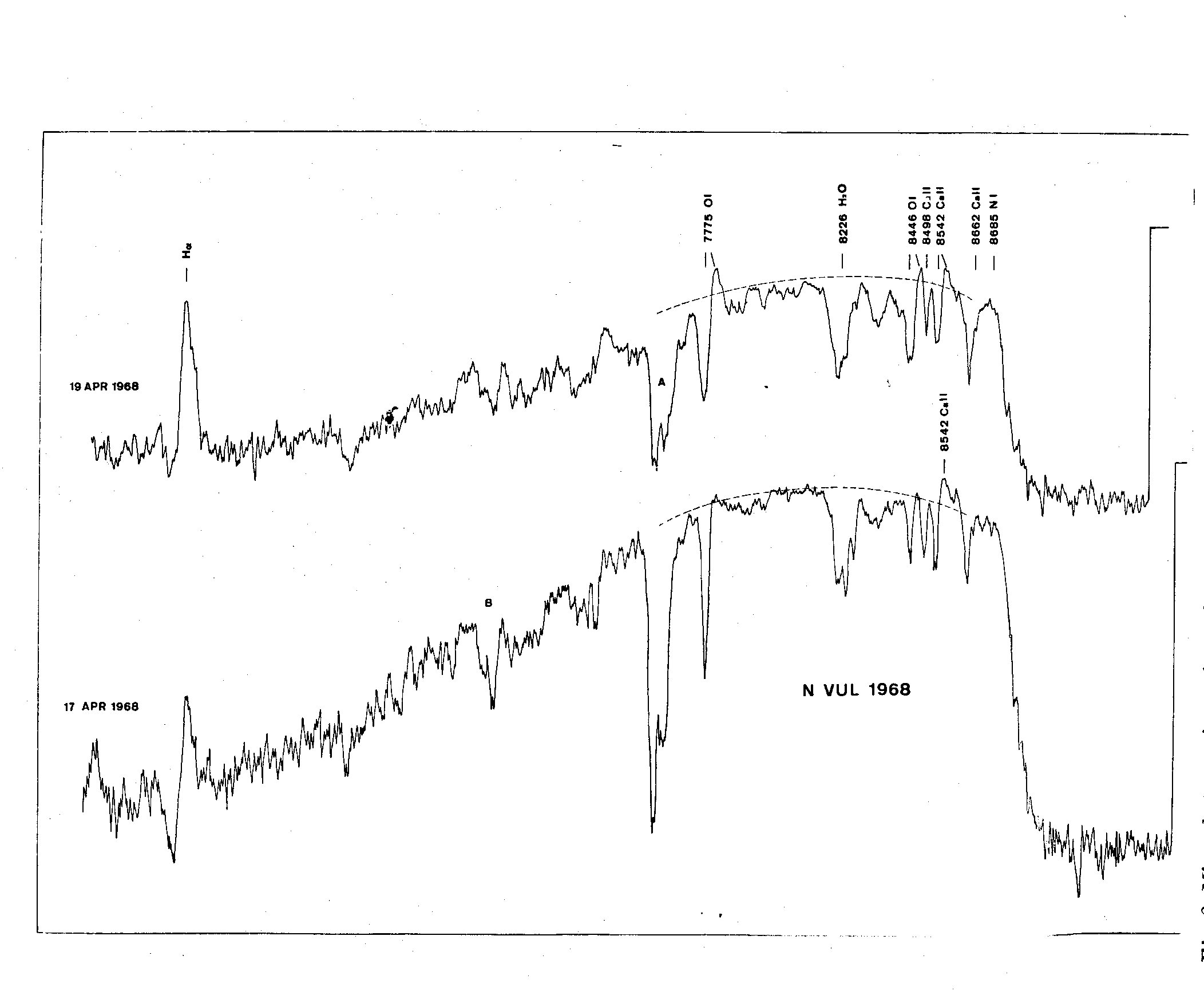 in a nova the absorption lines of the CaII infrared triplet. Since N Vul 1968
