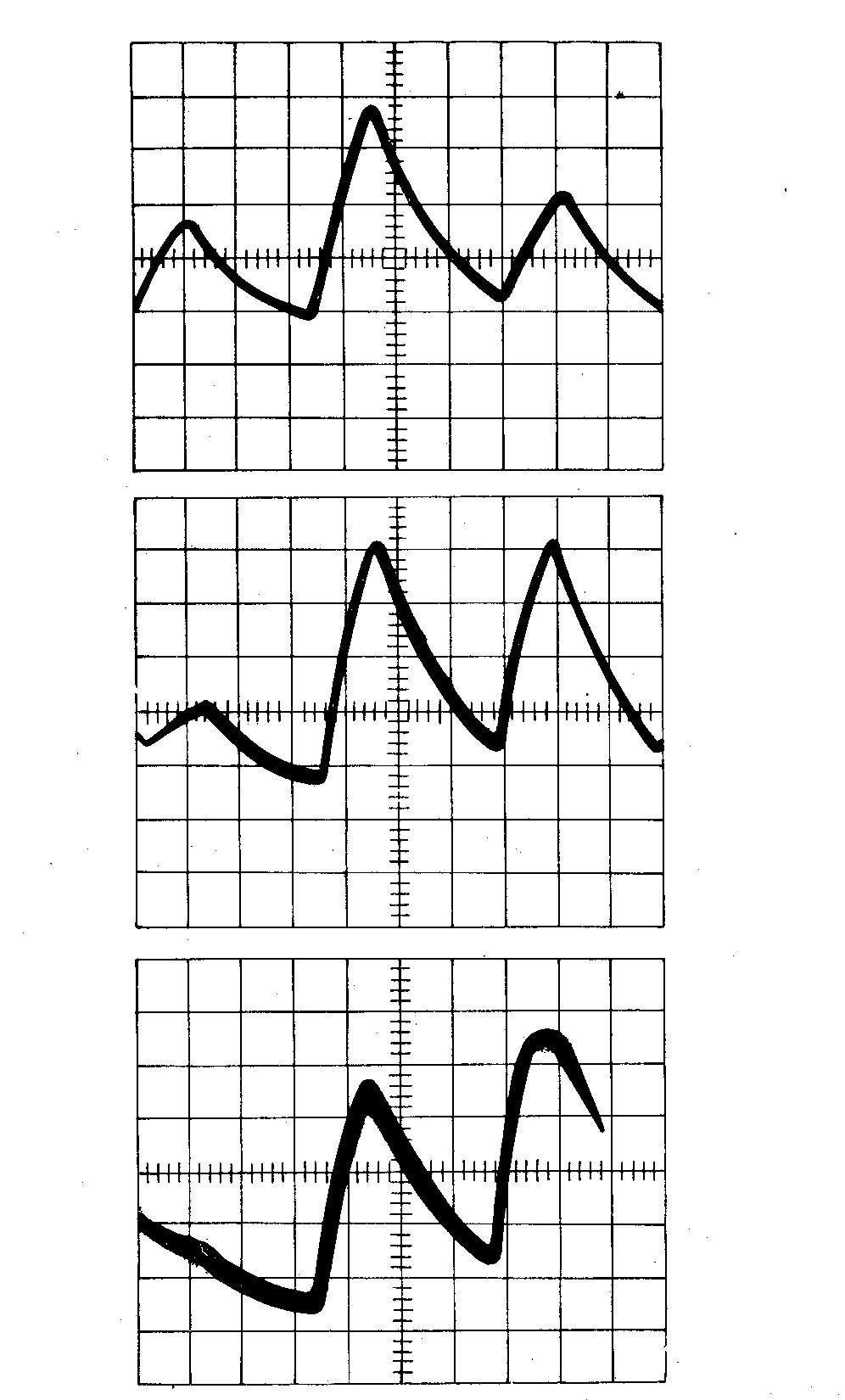 Fig. 3. The response of the photometer for B6, G2 and K5 spectral type stars (from the top to the bottom).