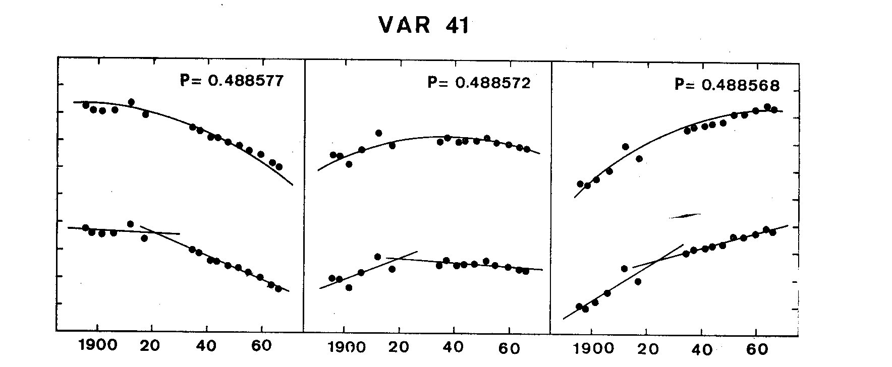 Figure 2f. O-C diagram for Var 41 in M5. The marks on the vertical axes are