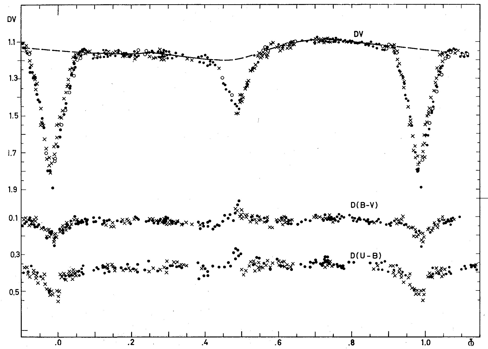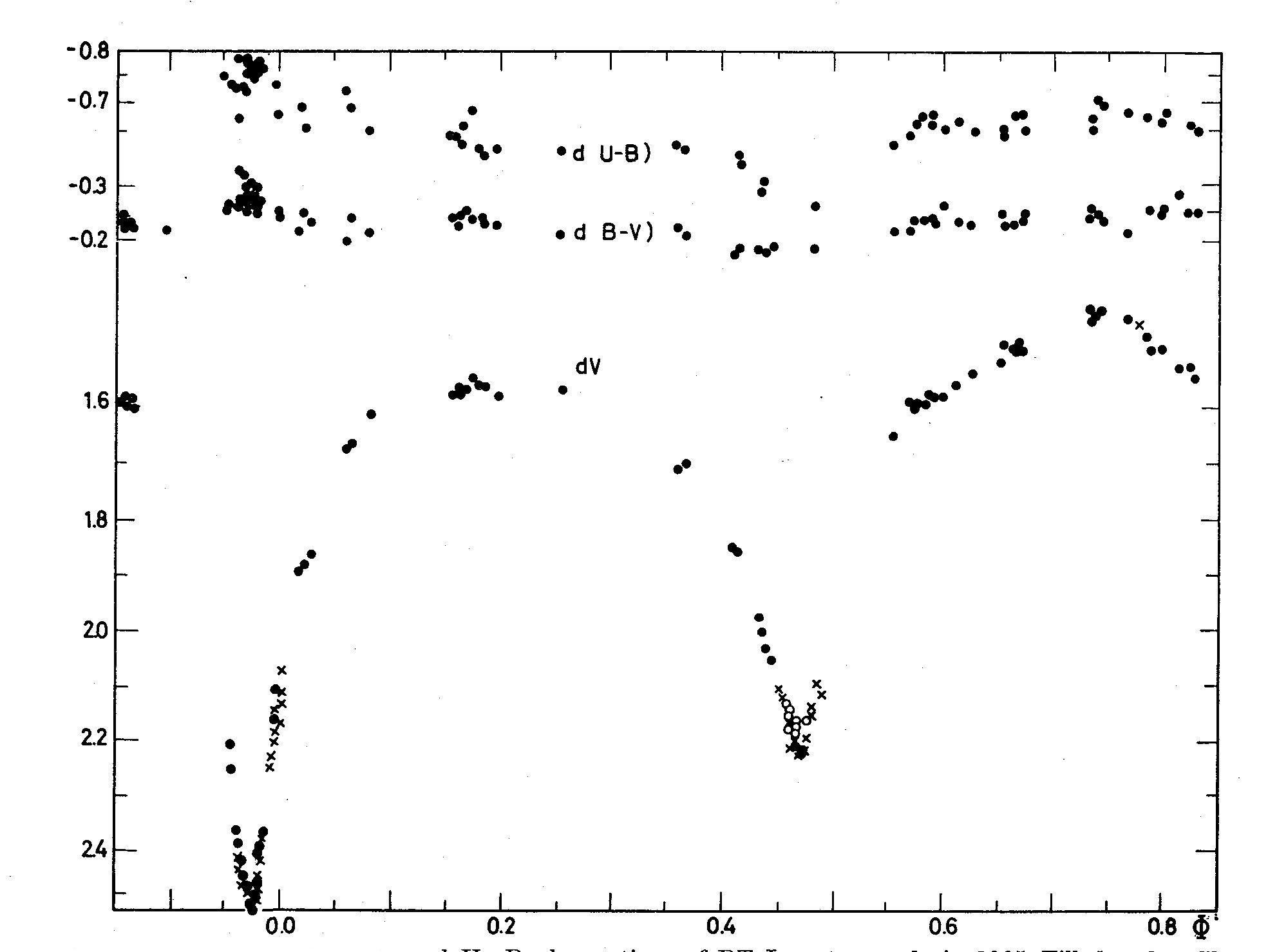X's are the individual points of D. Hall obtained at KPNO.