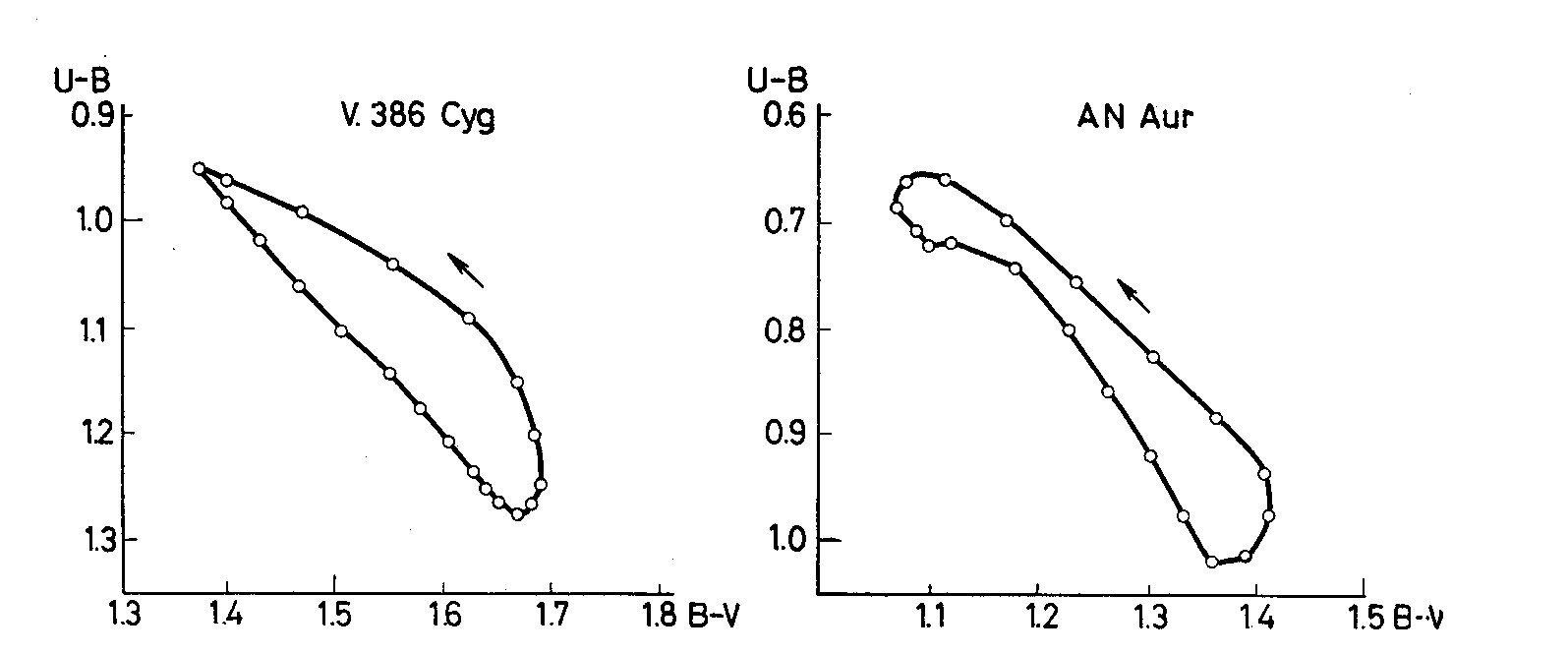 Thus the increase of the "opening" of the curves (U-B)/(B-V) correlates