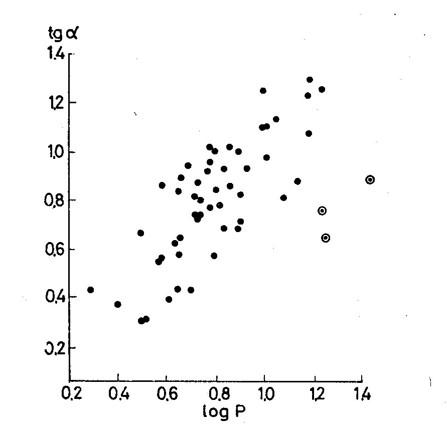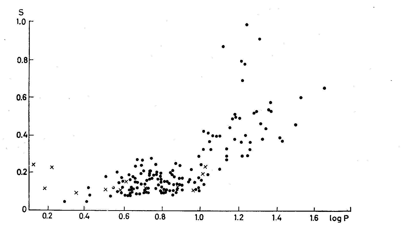 the logarithm of the periods (Fig. 5). It is evident that for all stars with