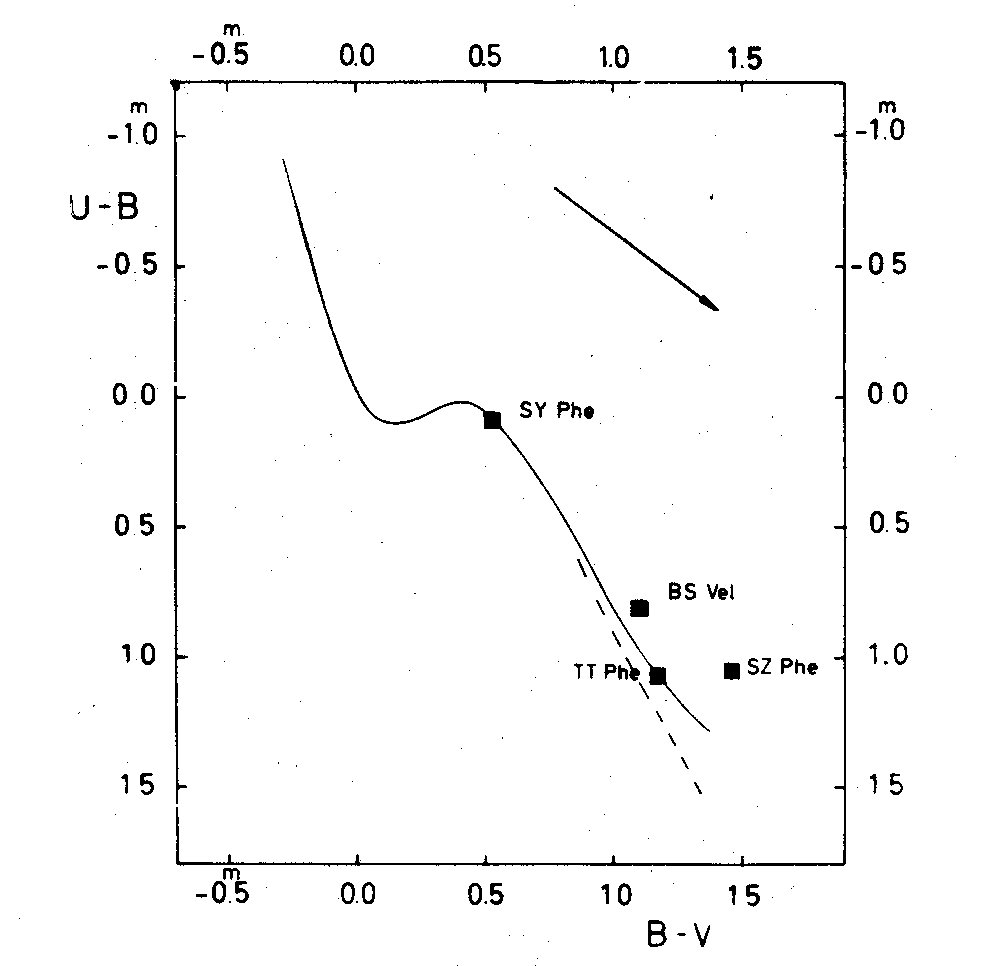 diagram is plotted. It seems that SY Phe is an F-Type star in agreement