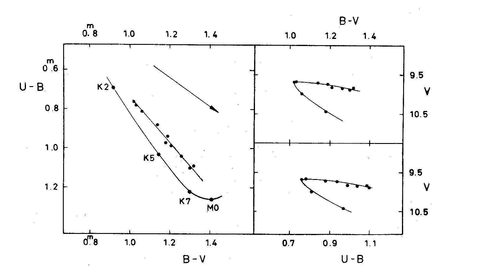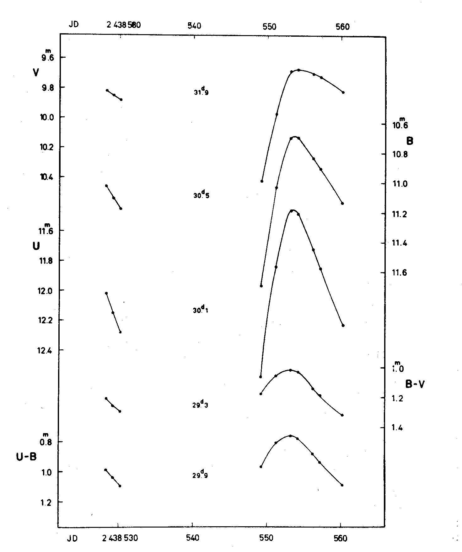 0.3m in B - V, resp. 0.34m in U - B (Fig. 3). The light curve resembles