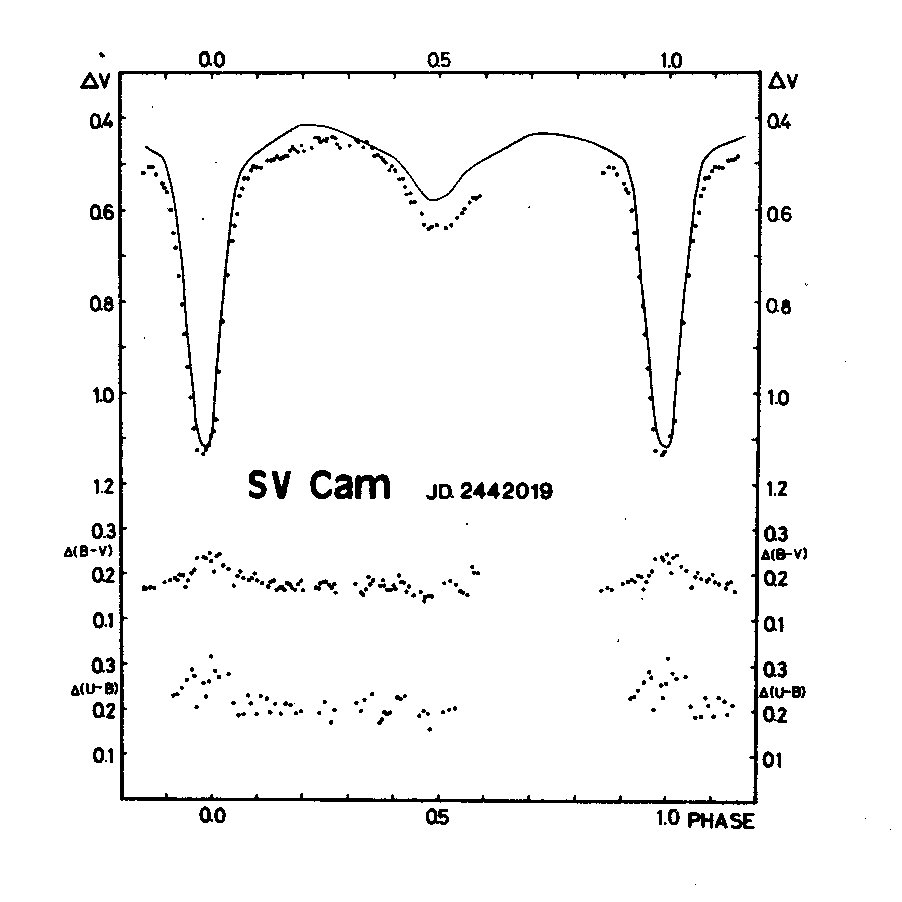 Extended photoelectric UBV photometry of the system SV Cam has been
