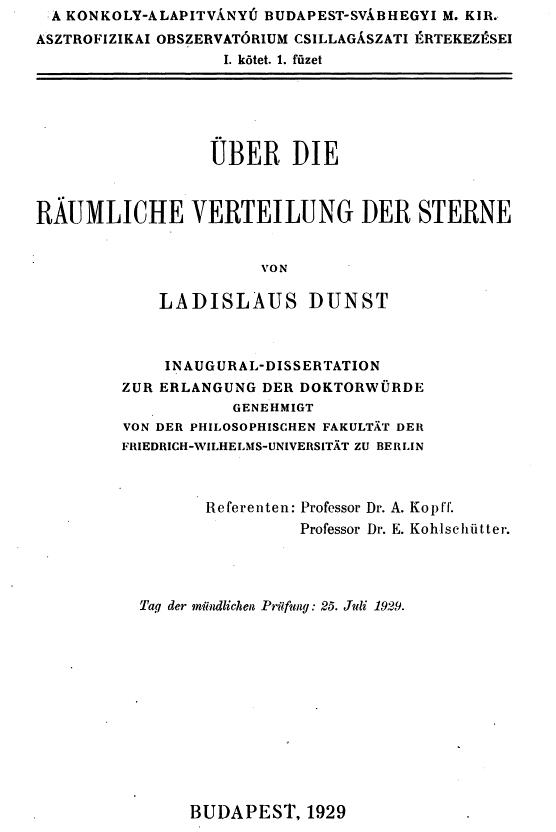 series containing Detre's PhD Theses on the space distribution of stars.