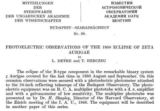 The first published result based on photoelectric