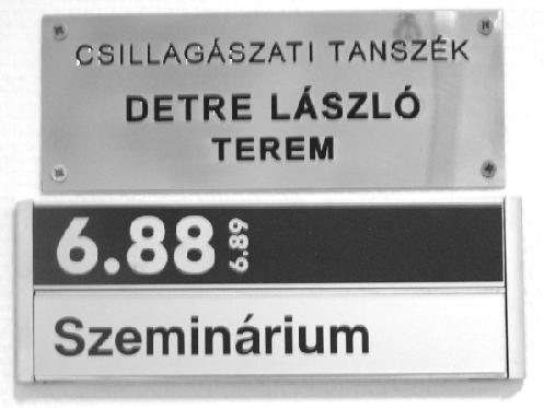 The University keeps memory of Professor Detre. A seminar room of the Department of Astronomy in the new university campus at Lágymányos has been named after him making Detre's name known and familiar for younger generations, and not only in astronomy. A bust of him has also been erected in the hall of the Faculty of Natural Sciences, among the busts of other great professors of the University.