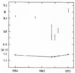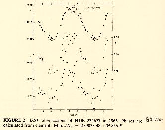 In late 1960s and early 1970s, flare stars were increasingly observed. Beside flares, rotational modulations were revealed in several cases. Some stars, like BY Dra showed flares as well as rotational modulation. Fig. fig1 shows a light curve of HDE 234677 observed in 1966 by Krzeminski (1968), which appeared in a conference proceedings on the light variation of dM and dMe stars. At that time the star did not have a variable star designation, but slightly later aroused L. Detre's attention: he marked the name of the variable in the book. This variable was later observed with the 60-cm telescope in Budapest, and in 5 colours (UBVRCIC) with the 1-m telescope at Piszkéstetö mountain station, which is also plotted in Fig. fig1.