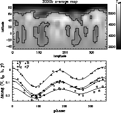 Thirty years have passed already, and during all these years stellar activity research has been continuously developing. Simultaneously with the delivery of Hall's (1976) talk studying active stars began at the Konkoly Observatory as well, and the author of this paper, who talked about spotted stars with L. Detre as a student, finally got this subject as a lifetime project from B. Szeidl. It was a unique possibility to take part in a research field from its very beginning. At present, mapping stellar surfaces is a routine task. Figure fig6 shows the surface of an active giant star derived from spectral line profile analysis (Doppler imaging) and the modelled brightness variation from photometric measurements made in four colours by Oláh et al. (2002).
